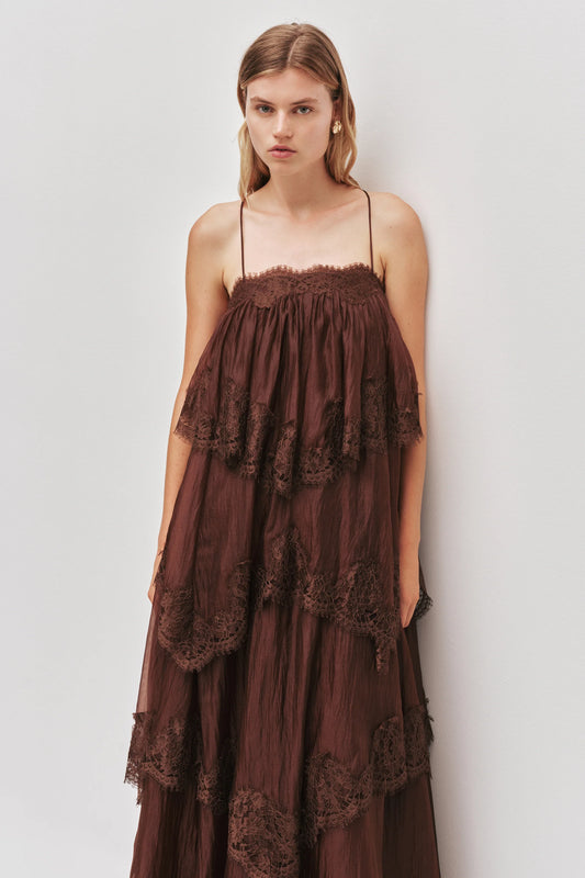 AJE OPHELIA LACE GOWN CHOCOLATE BROWN SIZE 8