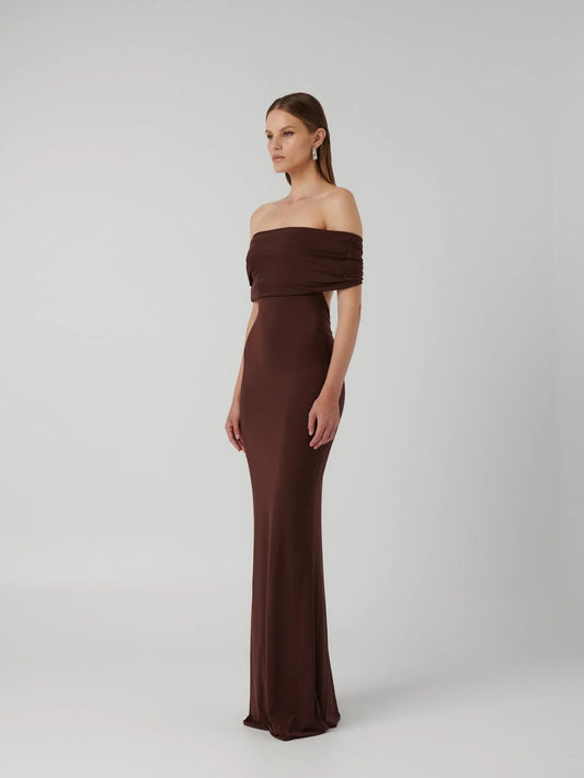 BENNI GINA MAXI DRESS CHOCOLATE SIZE 8
