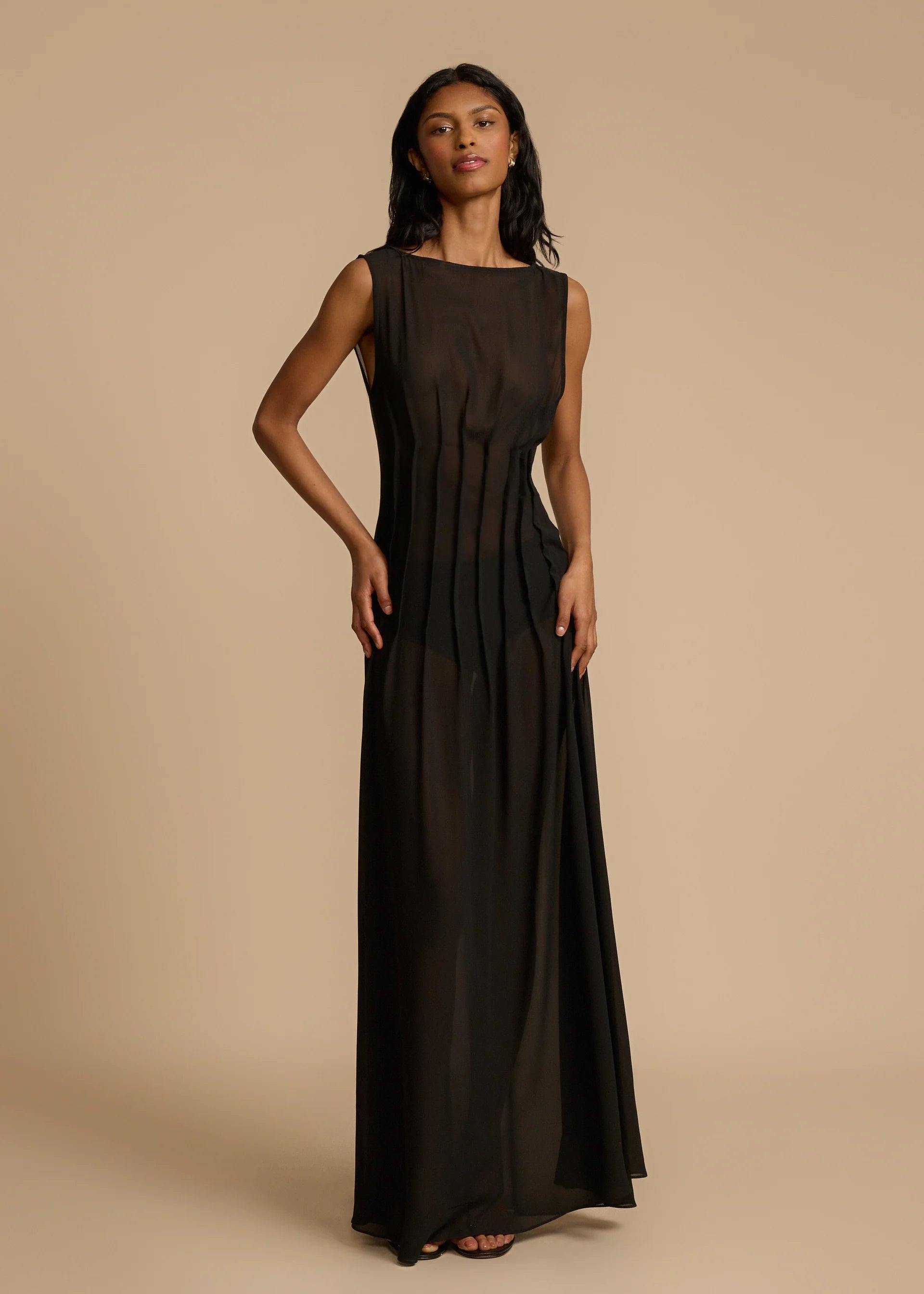 Introducing Audrey - a refined sleeveless maxi ideal for your next dress hire. This elegant style features a clean boat neckline and a soft, flowing shape that offers a naturally flattering fit. Subtle waist detailing enhances the silhouette without overpowering the look.