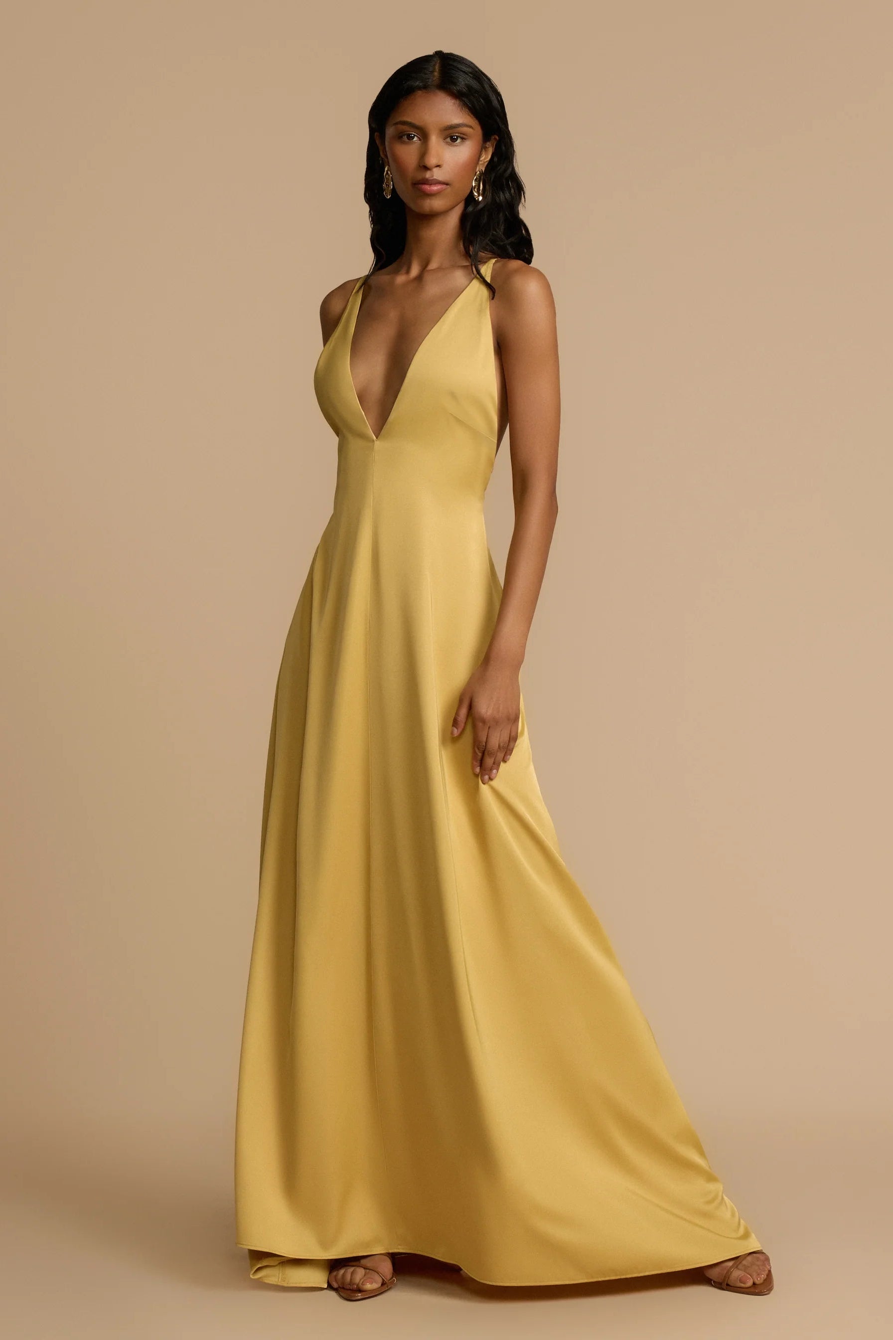 Meet the Soleil Dress, a standout choice for your next event or getaway. Designed in a luminous golden tone, this piece features a sleek, minimal silhouette that flatters the body while remaining effortlessly elegant. The deep V neckline and open crisscross back add a modern, feminine edge, finished with subtle statement bead accents.
